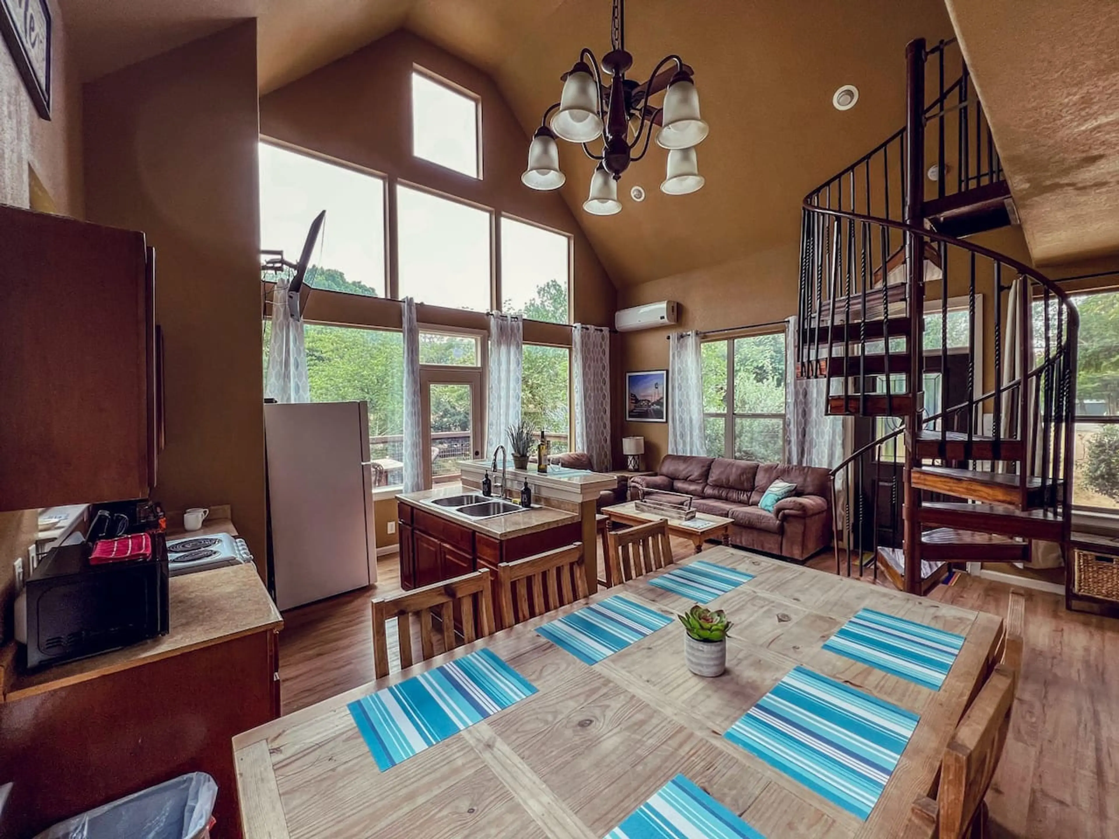 Relaxing cabin with fantastic River Access Park within walking distance directly across the street! 1 Bedroom w/ King size Bed, 2 queen beds in the Loft, walk in shower, Full kitchen, fully furnished! (Up to 2 pets allowed with $75 fee per pet ) The moment you arrive at our property and see the eno...