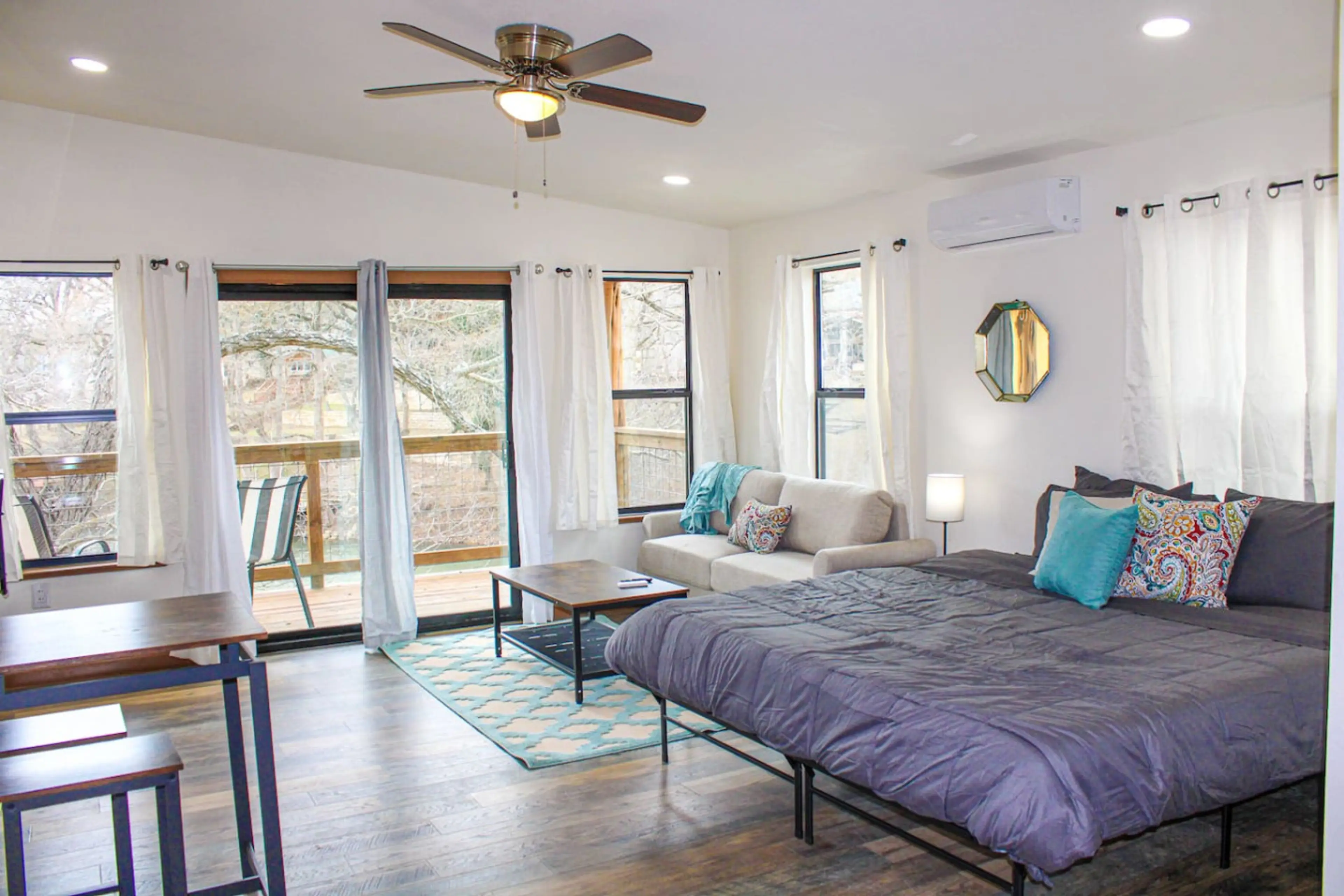 Amazing river view! Walk in shower, Kitchen, fully furnished! Sleep on the banks of the Guadalupe River! Since we are so centrally located, you will be able to easily access and enjoy many of the best places the Texas Hill Country has to offer, including river access from our property, Canyon Lake...